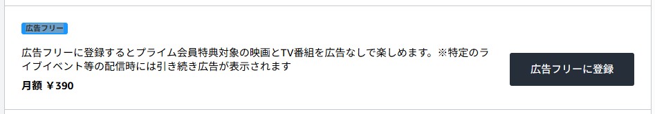 Amazonプライムビデオの広告をなくす「広告フリー」オプションは月額390円になります。