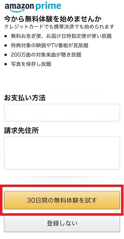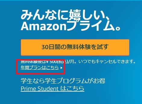 Amazonプライムの登録の仕方、月間プラン・年間プランを選択して申し込みと30日無料体験
