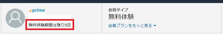 無料体験期間の残り日数の確認は以下のAmazonプライム会員情報のページから出来ます。