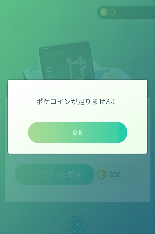 ポケコインが赤字で表示され、「ポケコインと交換」を押しても「ポケコインが足りません!」と表示されます