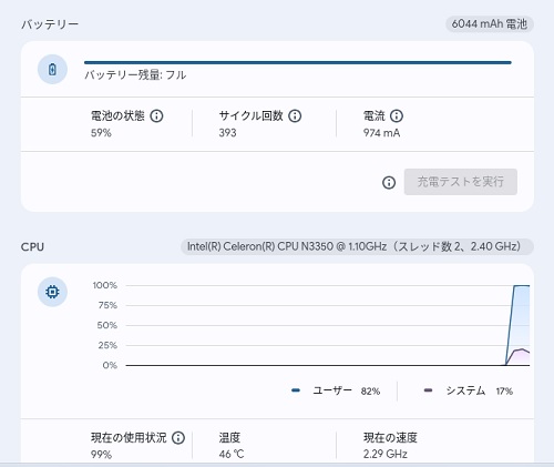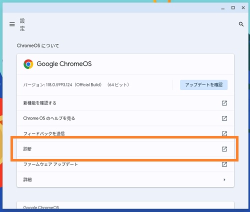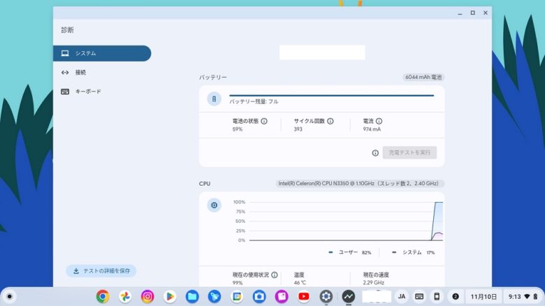 診断アプリを使用してChromebook(クロームブック)のCPU、メモリ、バッテリーの状態を調べる事が出来ます。