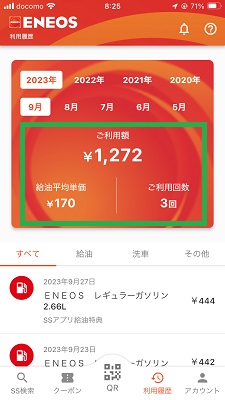 ・利用履歴の確認(金額・給油平均単価・回数)