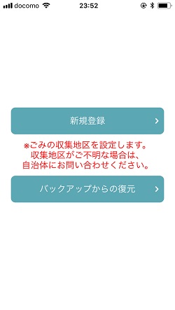 まずはお住いの地域の設定からになります(お住いの自治体、地域が対応してない場合もあります)