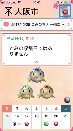 その日の具体的なゴミ出しの種類が表示されます。