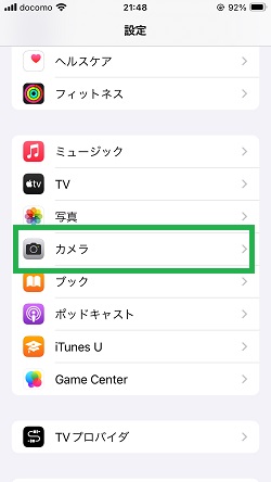 「設定」から「カメラ」をタップします。