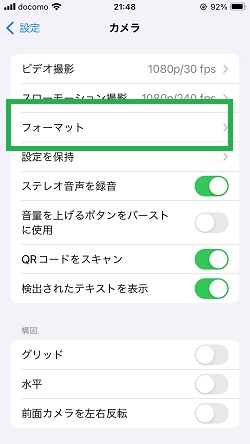 ・予めiPhoneで撮影する写真の形式をJPEG形式にする設定方法