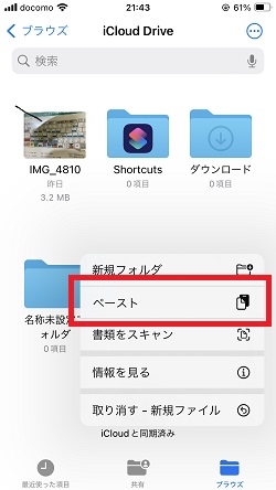 空いている部分を長押しするとメニューが表示されますので、「ペースト」します。