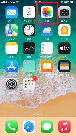 「写真」アプリを起動します。