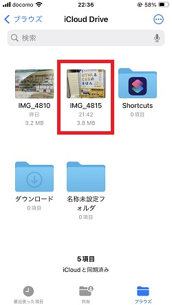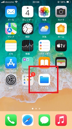 写真アプリを閉じ、「ファイル」アプリを起動します。