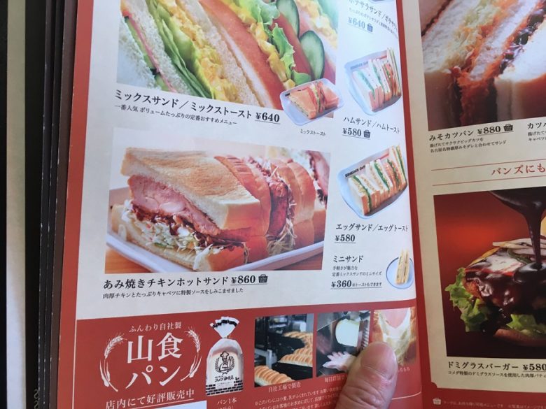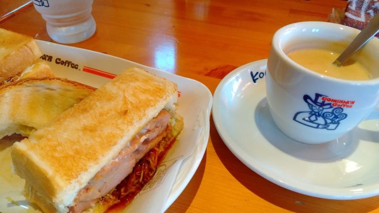 コメダ珈琲店に行き、「ミルクコーヒー」と「あみ焼きチキンホットサンド」を注文しました。