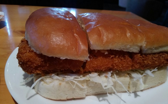 2人で1個のエビカツサンドを注文するくらいでもいいかもしれません、デフォルトでは3つに切られていますが、注文時に言えば4切れなどにもしてくれます。
