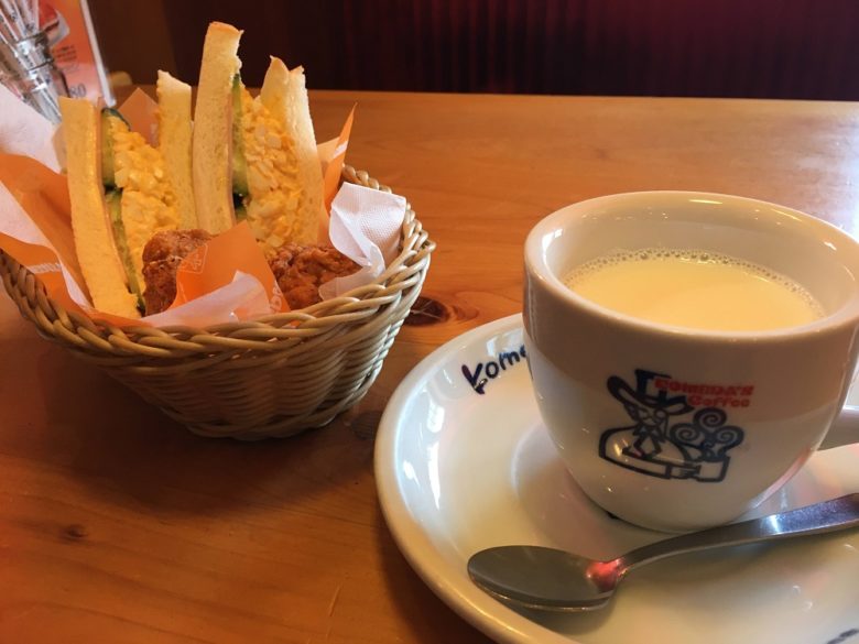 今回はコメダ珈琲店で「ミニコメバスケット」と「ホットミルク」です。