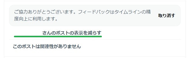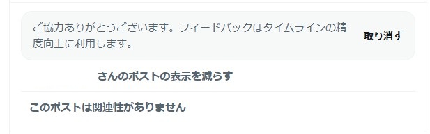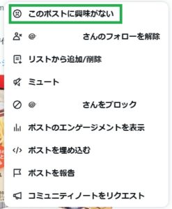「このポストには興味がない」機能は、ミュートするほどではないが表示数を減少させたいアカウントのポストに対して行う機能だと考えられます
