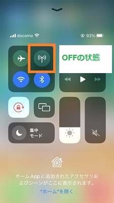 コントロールセンターでオン・オフ