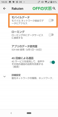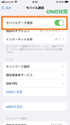 モバイルデータ通信のオン・オフの設定方法