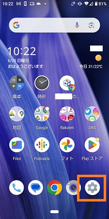 「設定(歯車)」をを選択します。