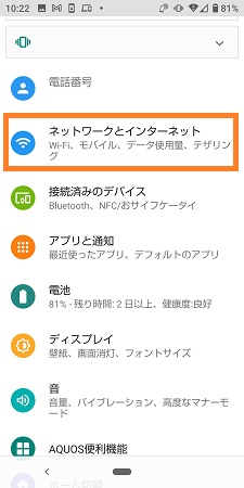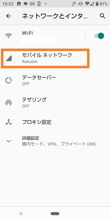 「モバイルネットワーク」を選択します。