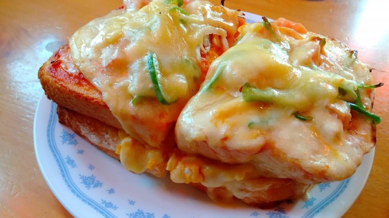 カフェオーレとたっぷりたまごのピザトースト
