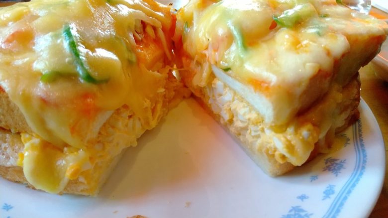 チーズがたっぷり、そして間にはたまごペーストがたっぷり挟まれています。