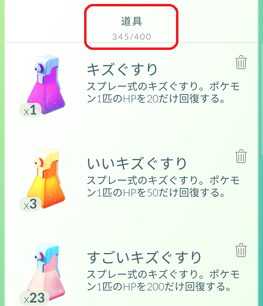 しかし、ポケストップに行ってもバッグが所持数上限だとポケストップを回しても意味がありません。