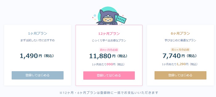 3通りの課金プランに分かれているので自分の目的、スケジュールに合うプランを選びましょう。