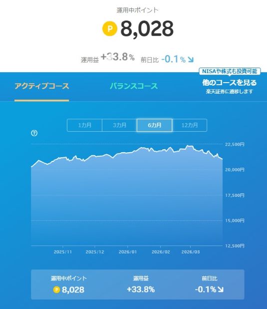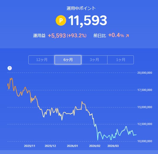 その楽天ポイントの運用成績の推移を記録しています。