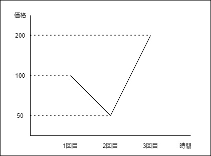 A商品を定期的に100円づつ購入するとなると、ドルコスト平均法では