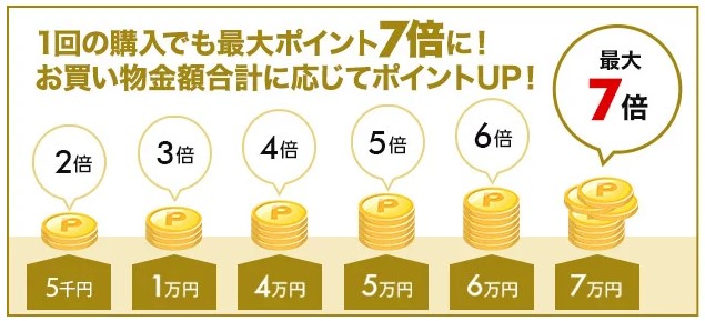 | 70,000円(税込)以 | ポイント7倍(通常ポイント1倍+特典ポイント6倍) |