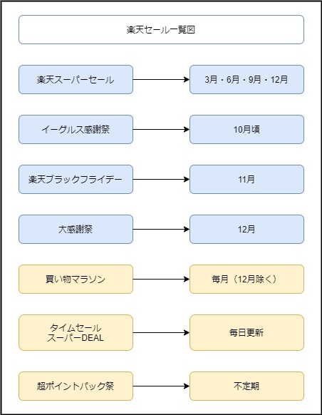 楽天のセールで主なイベントは4つの種類があります