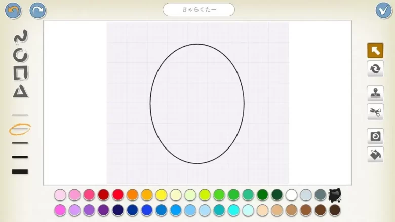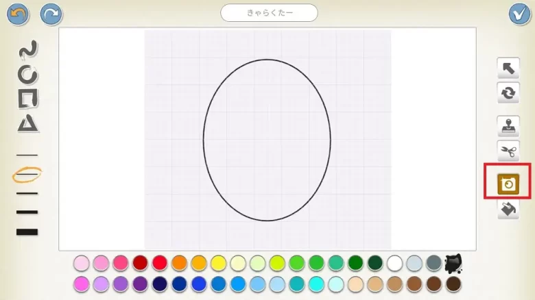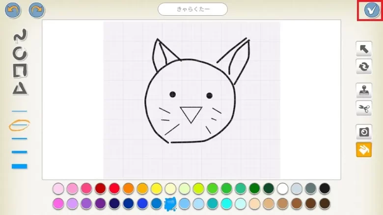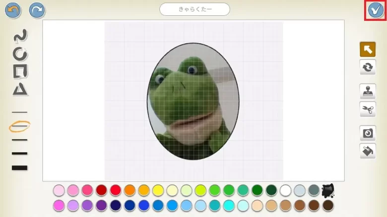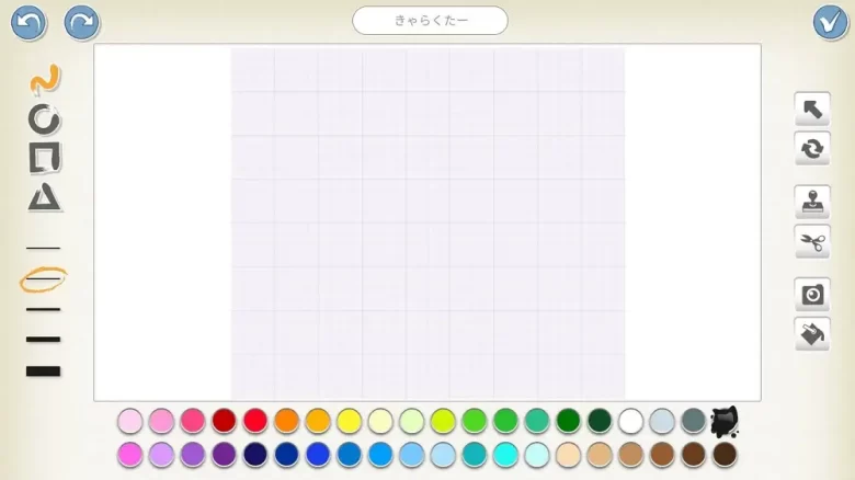オリジナルのキャラクターを作成、お絵描きする事が出来ます、キャラクターを作成出来たら右上のチェックマークでメイン画面に追加します。