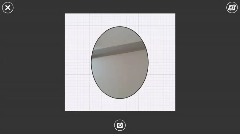 右側の「カメラツール」選択した状態で丸の図形の枠内をタップします。