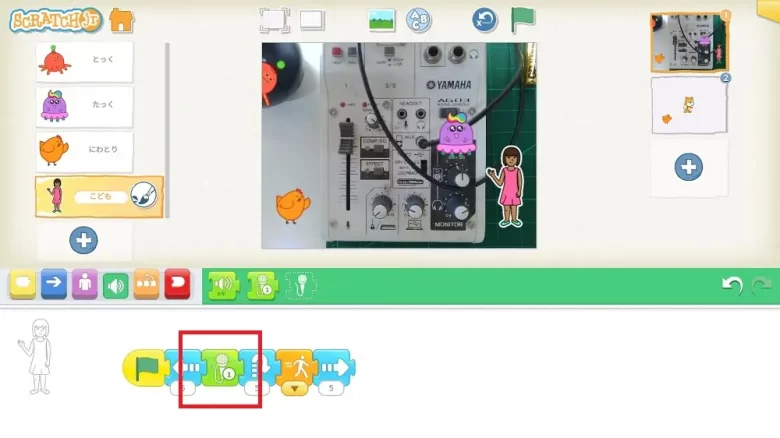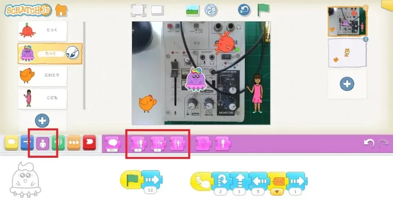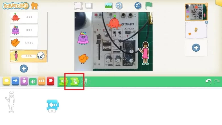 撮影したキャラクターがメイン画面に追加されて、ブロックでの操作が可能になりました。