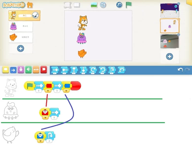 Scratch jrはScratch(スクラッチ)の低年齢版として開発されました。