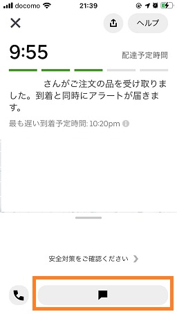 注文後に情報などを追加したい場合は配達パートナーにメッセージなどが出来ます。