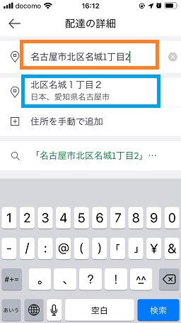 ホーム画面の上部をタップして住所入力画面に移ります。