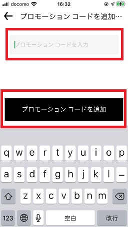 空欄にプロモーションコードを入力して「プロモーションコードを追加」をタップします。