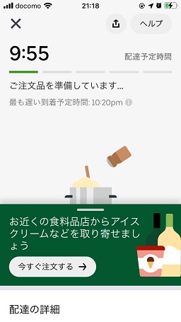 調理の開始と配達パートナーのマッチングが始まります、配達パートナーが決まると画面が変わります。