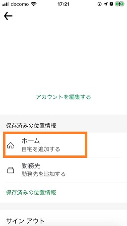 「アカウント」→「アカウントの詳細」→「ホーム」から行うことが出来ます。Uber Eatsで出来るだけ早く正確に届くためには住所の正確な入力が大事です。