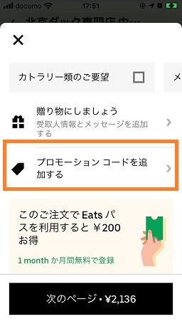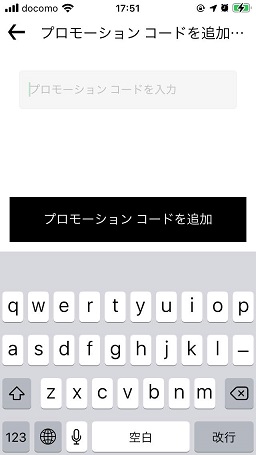 「プロモーションコードを追加する」からプロモーションコードを入力して追加します。