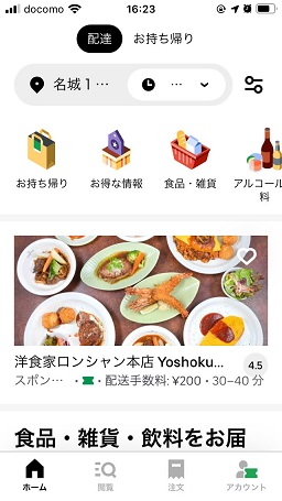 Uber Eats(ウーバーイーツ)は料理などの注文から受取り、支払いまでアプリ内で完結するシステムです。