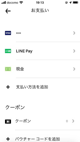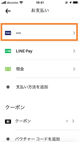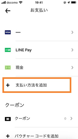 Uber Eatsの支払い追加設定
