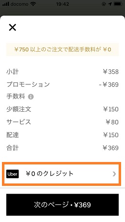 会計画面において「Uber クレジット」をタップします