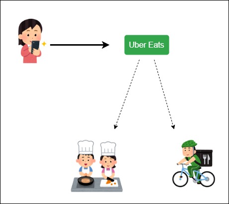 ご存じのようにUber Eatsのシステムは以下のように