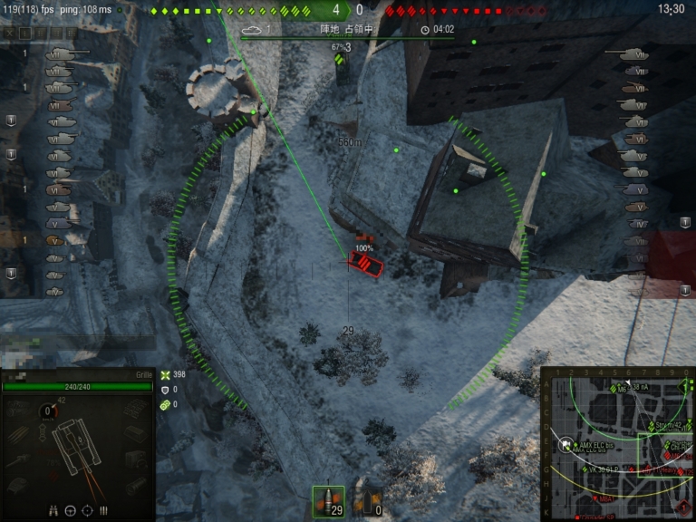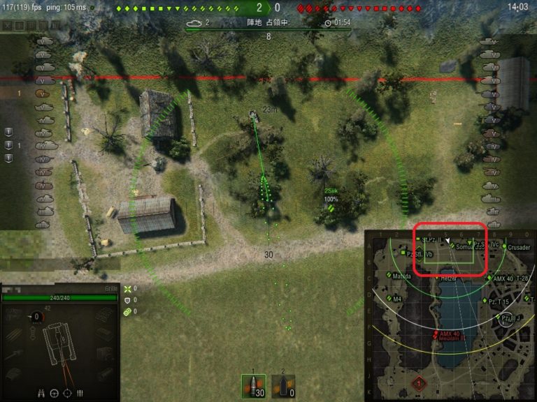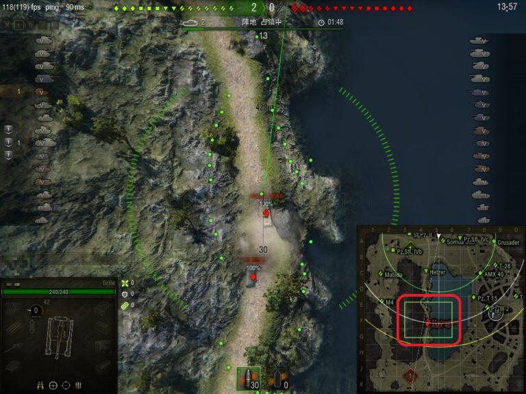 さらに応用をきかせれば、見えてなくても進行方法などを予見して「見えてない状態の敵戦車」を砲撃することもできます。