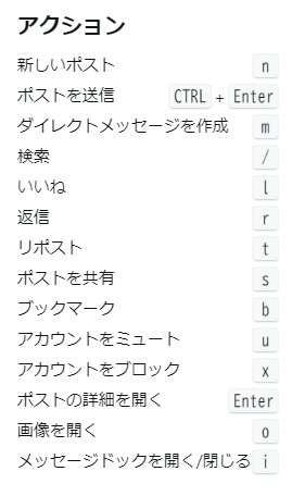 | CTRL+ENTER | ポストを送信 |