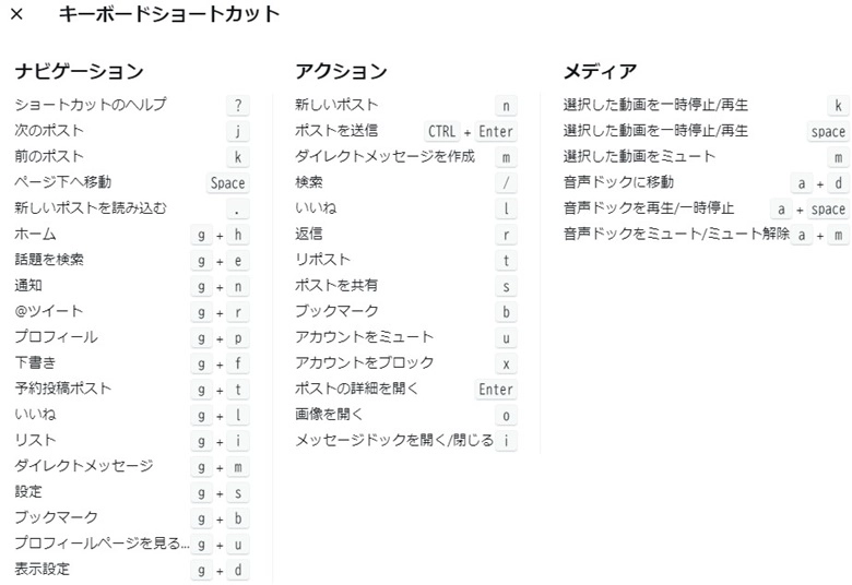 X(Twitter)の便利なショートカットキー